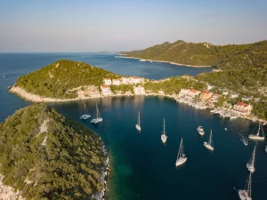 Sejl sydpå til den fortryllende ø og Naturparken Lastovo. Vores bedste valg er Zaklopatica-bugten, der er elsket af sejlere for sin afsondrethed og afskærmet af holmen, der deler navn med den. Med praktiske fortøjningspladser og vigtige faciliteter er det en et godt sted at overnatte. Et sjovt faktum: Bugten er hjemsted for ynglende middelhavslærkefugle, der er kendt for deres barnlige skrig. Hvis du rejser med børn, kan deres legesyge lyde måske blande sig!