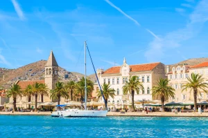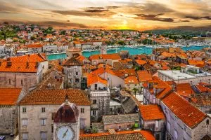 Trogir, som er på UNESCO's verdensarvsliste på Kroatiens Adriaterhavskyst, er et Fængslende middelalderby indkapslet i gamle mure. Trogir er kendt for sin velbevarede romanske og renæssancearkitektur, og dens labyrint af smalle stengader, fæstning og den slående St. Lawrence-katedral viser dens rige historie. Beliggende på en Lille ø bygget bro over til fastlandet, og denne perle byder på en blanding af venetiansk arv og kystcharme.
