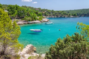 Begin your adventure in Milna, a quaint fishing village on the island of Brač. You can secure a spot in the ACI marina in Milna or anchor in nearby serene bays like Bobovišća. This bay, resembling a fishtail, even features a “konoba” where you can savor local delicacies. For a safe night’s stay shielded from gusty winds and an authentic taste of local culture and traditions, the well-appointed ACI marina in Milna is unparalleled.